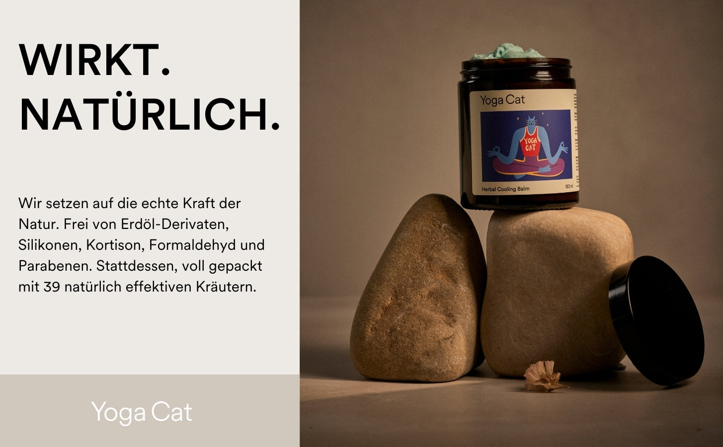 Unser kühlendes Sport-Balsam entspannt und beruhigt die Muskeln - egal wie intensiv die Yoga- oder Fitness-Session war. Einfach einmassieren oder gebe ihn in ein Bad - und genieße das kühlende und erfrischende Gefühl, das eine handverlesene Mischung aus 39 Kräutern erzeugt. Diese Rezeptur ist geeignet, um Verspannungen, Muskelkater und Schmerzen jeglicher Art zu erleichtern.